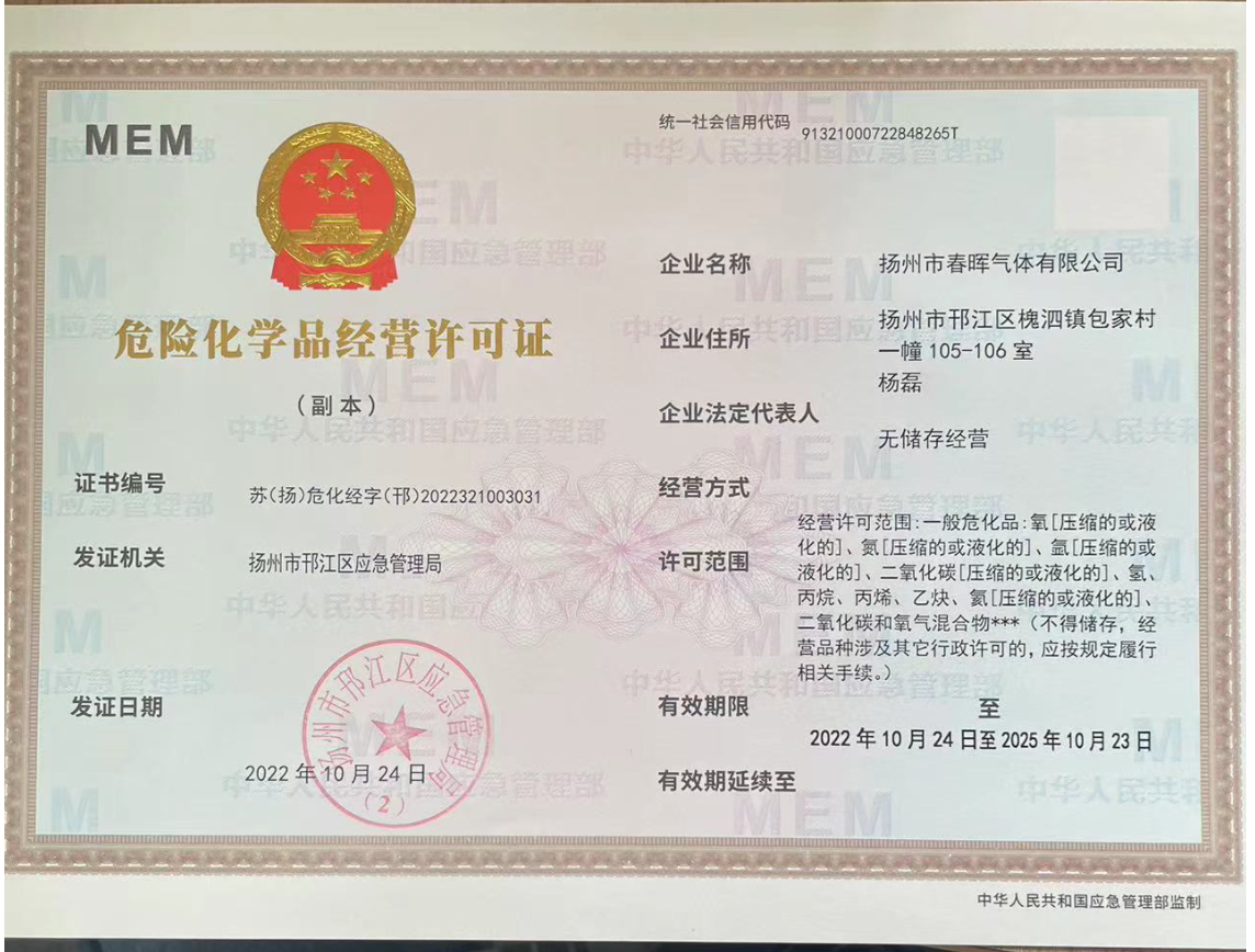 您好!歡迎來到揚州市春暉氣體有限公司官網!返回首頁聯系我們15905279158
